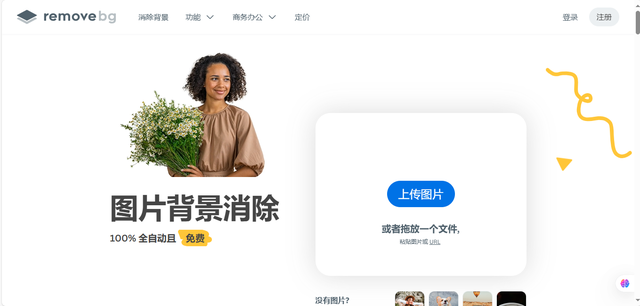 访问官网拖拽图片至界面,3秒内生成透明背景图;